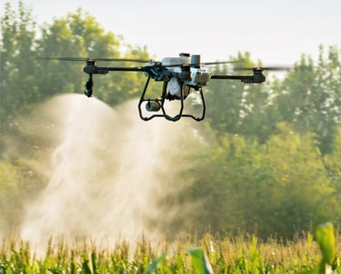 Serviço de pulverização eficiente e preciso para suas culturas com drones agrícolas.